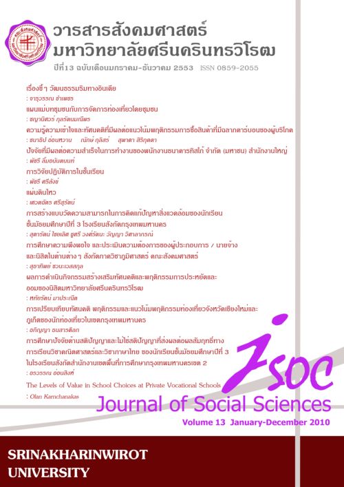 Vol. 13 (2553): วารสารสังคมศาสตร์ มหาวิทยาลัยศรีนครินทรวิโรฒ ปีที่ 13 (มกราคม - ธันวาคม 2553)