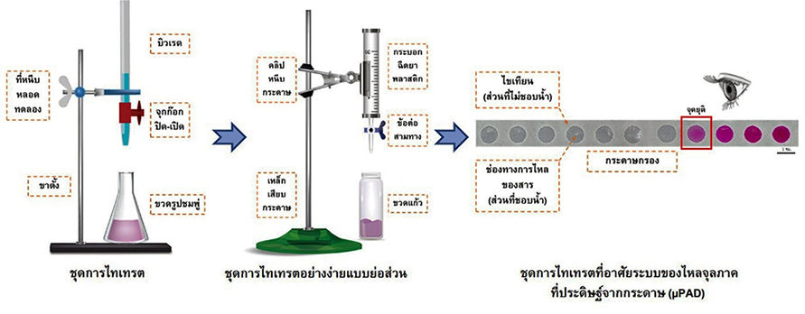 การสาธิตชุดการทดลองในวิชาเคมีที่อาศัยระบบของไหลจุลภาคที่ประดิษฐ์จากกระดาษ (µPAD) ที่สร้างโดยใช้ไขเทียนเป็นวัสดุไม่ชอบน้ำ