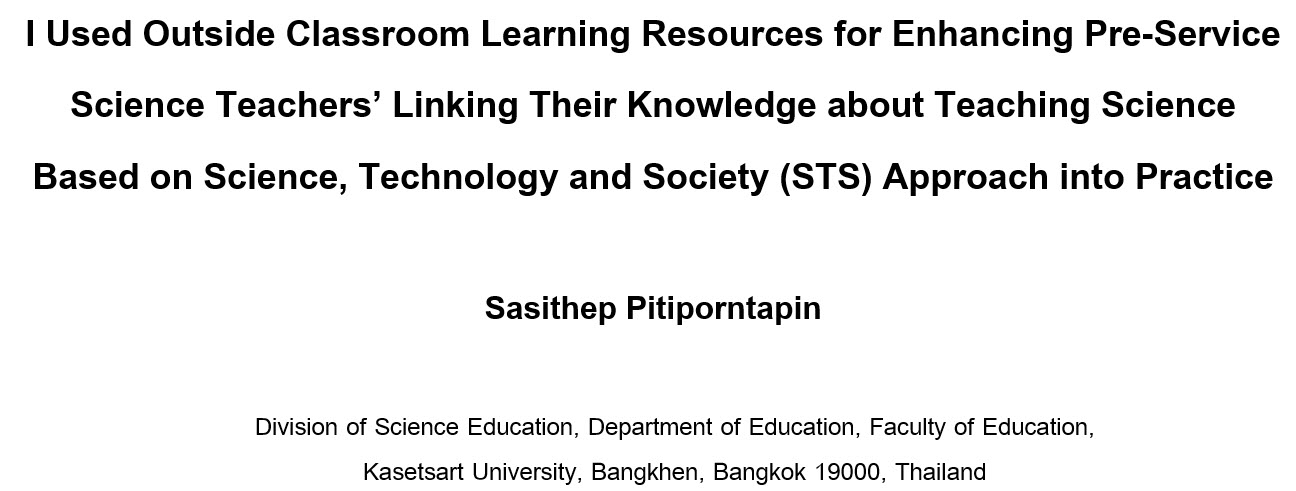 ฉันใช้แหล่งเรียนรู้นอกห้องเรียนเพื่อส่งเสริมให้นิสิตครูวิทยาศาสตร์เชื่อมโยงความรู้เกี่ยวกับการจัดการเรียนรู้วิทยาศาสตร์ ตามแนวคิดวิทยาศาสตร์ เทคโนโลยี และสังคมสู่การปฏิบัติ