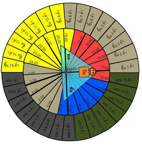 คำสำคัญ: แบบจำลองทางเลือก เวลาขึ้นและตกของดวงจันทร์ หน่วยเวลา โมงเช้า โมงเย็น ทุ่ม ตี